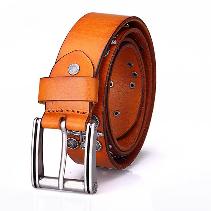 Heavy Metal Rivet Skull Cross Pattern Leather Belt